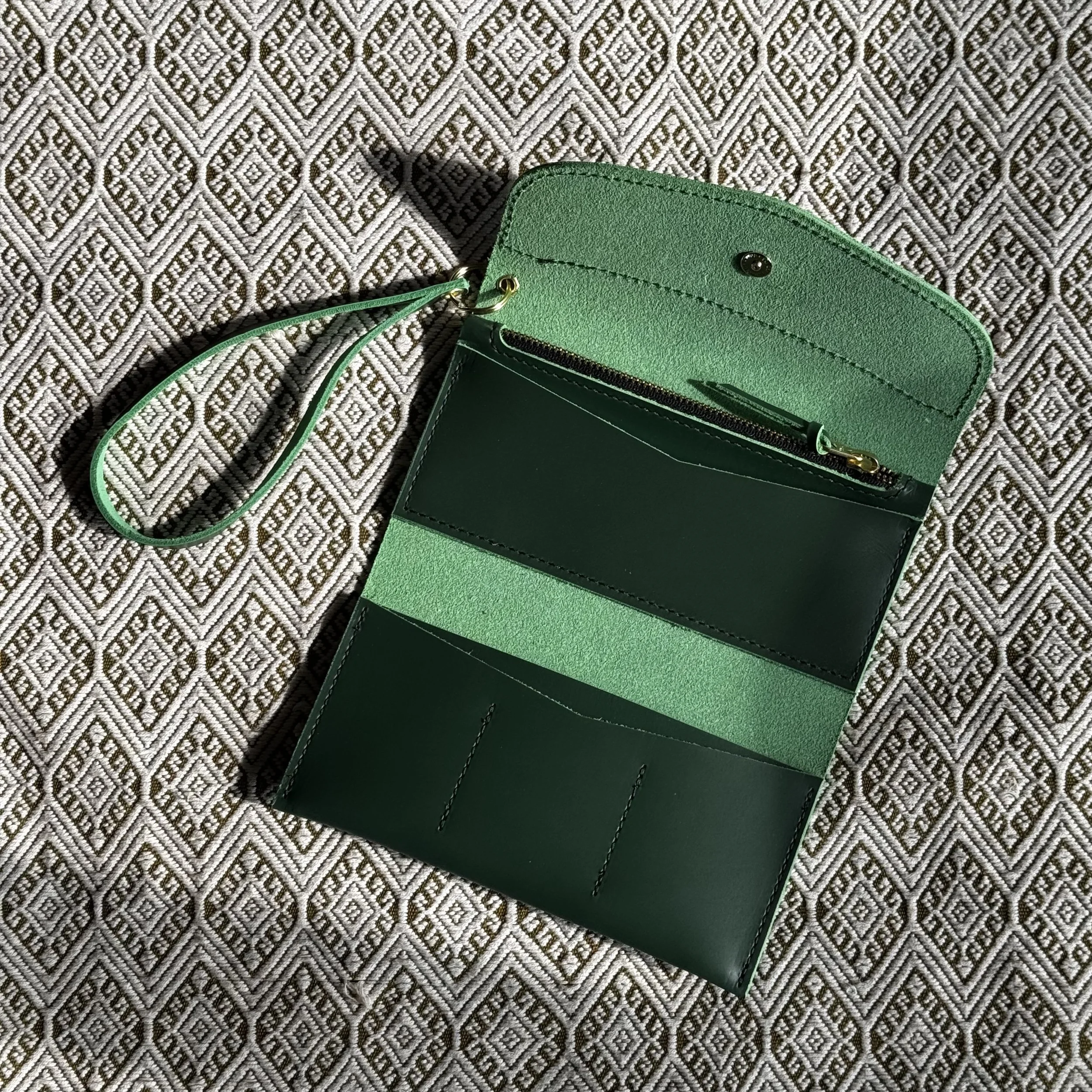 Chivis Clutch Wallet with Wristlet in Saguaro Bridle Leather